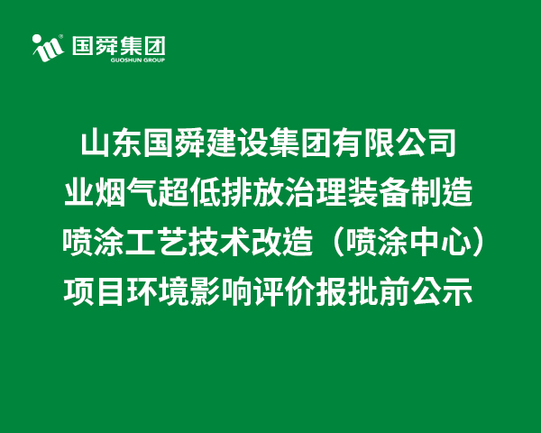 山东优德88建设集团有限公司工业烟气超低排放治理装备制造喷涂工艺技术改造(喷涂中心)项目环境影响评价报批前公示