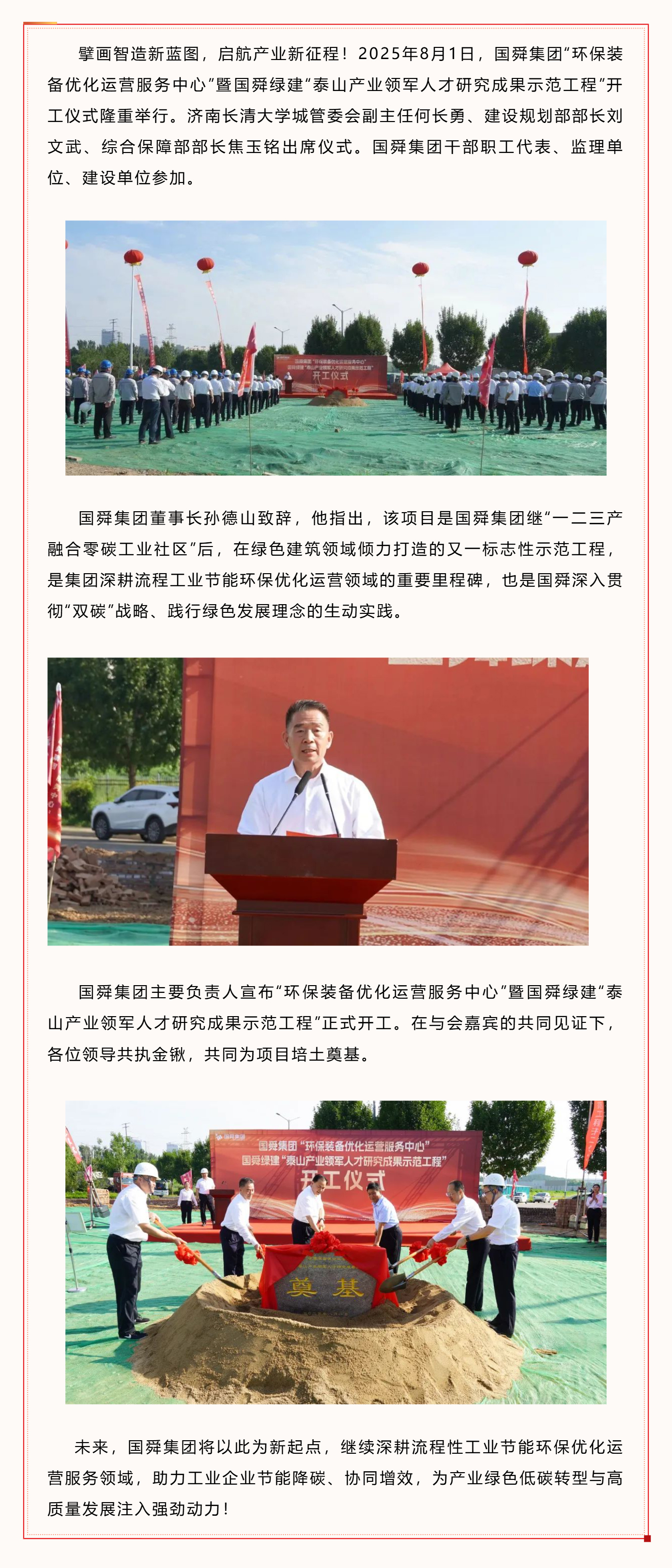 头条 | 夯基筑梦,擘画新程!优德88集团“环保装备优化运营服务中心”暨优德88绿建“泰山产业领军人才研究成果示范工程”正式开工!