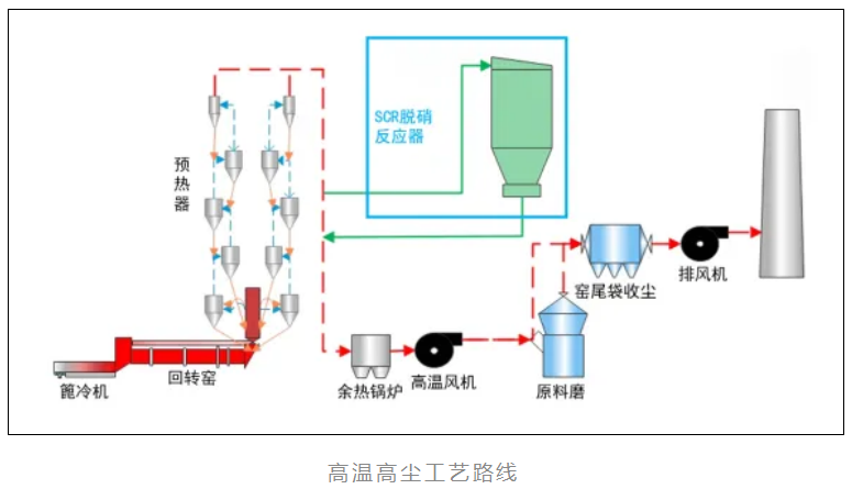 邢台建德水泥项目采用中温中尘工艺,项目日产熟料3000t/d,设计烟气量240000Nm³/h、烟气温度200℃、SCR入口NOX浓度300mg/Nm³,投运后排放指标NOX排放<30mg/Nm³、氨逃逸<5mg/Nm³、系统阻力<700Pa。