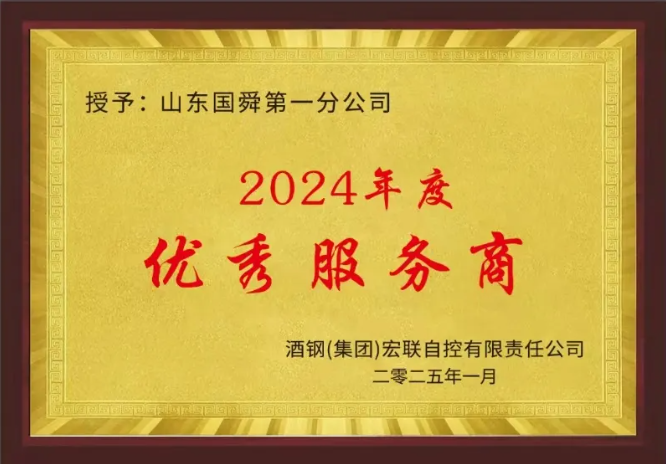 日前,山东优德88建设集团有限公司第一分公司(以下简称“一分公司”)获得酒钢(集团)宏联自控有限责任公司(以下简称“酒钢宏联”)“2024年度优秀服务商”称号。