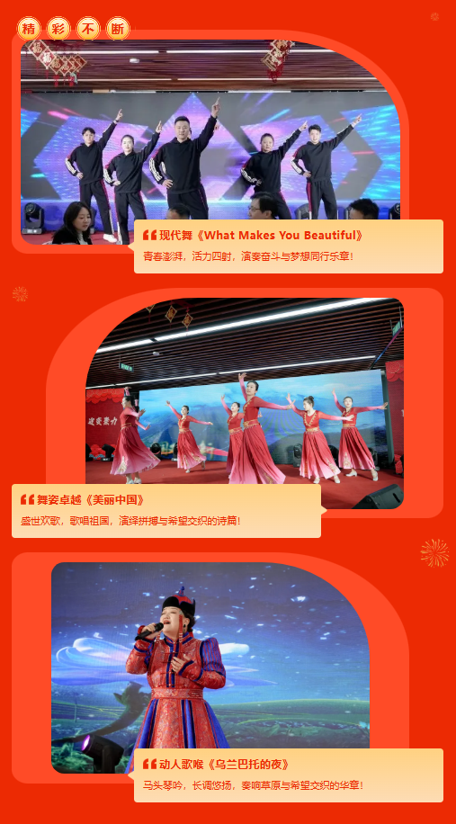 会议结束后,集团举行了联欢晚会。各子分公司自编自导的精彩文艺节目轮番上演,展现出了集团公司员工昂扬奋进的精气神。精彩的演出激励全员团结一心、并肩携手、迎难而上,为实现全年目标任务不懈奋斗!